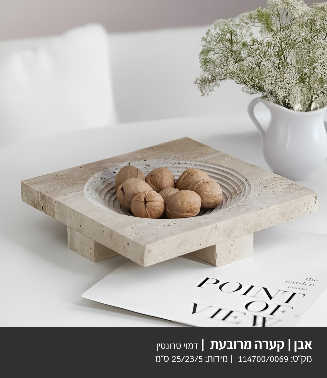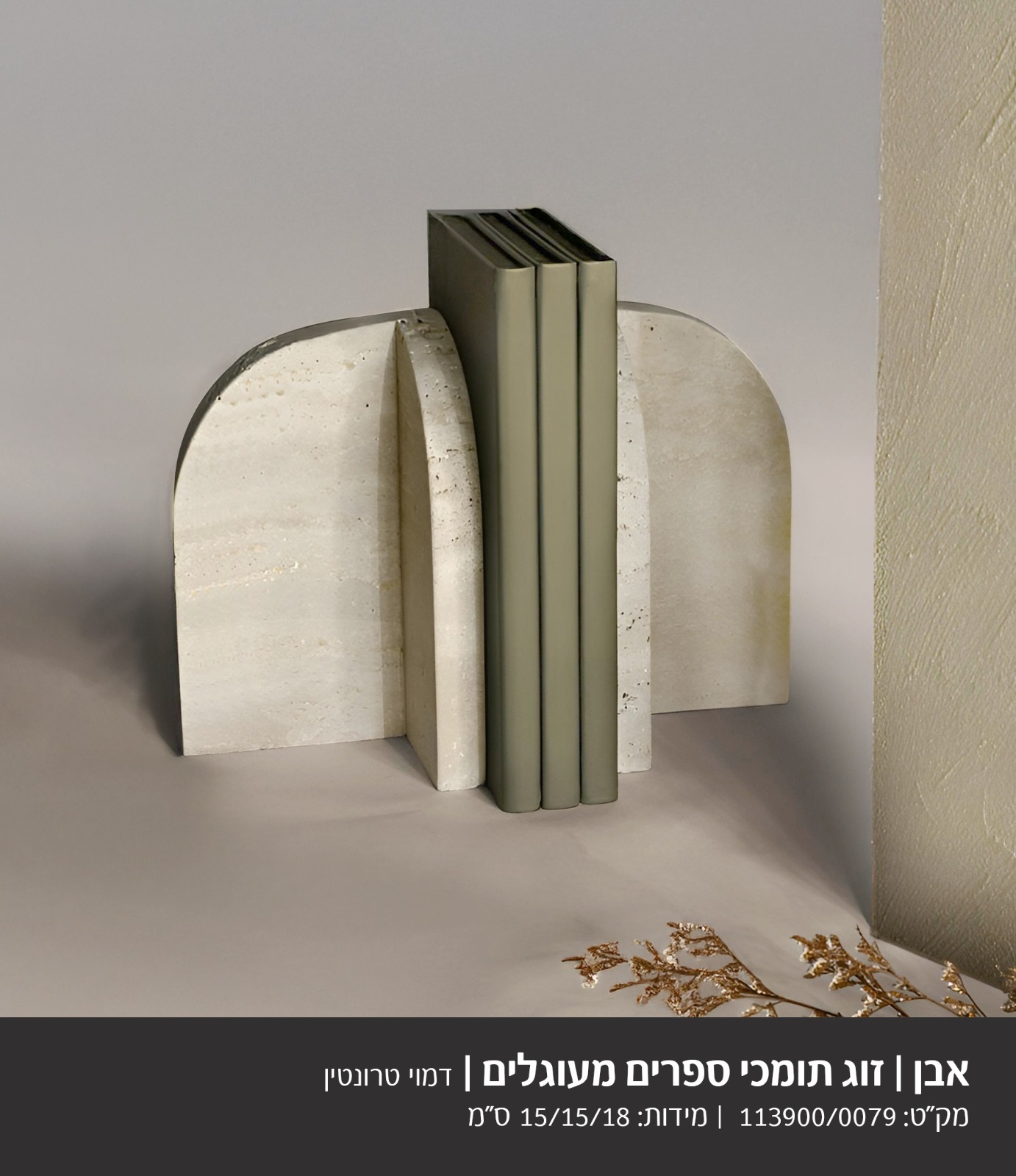 אבן - זוג תומכי ספרים מעוגלים דמוי טרוורטין