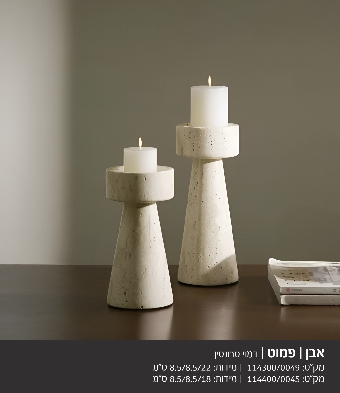 אבן - פמוט גובה 22 דמוי טרוורטין