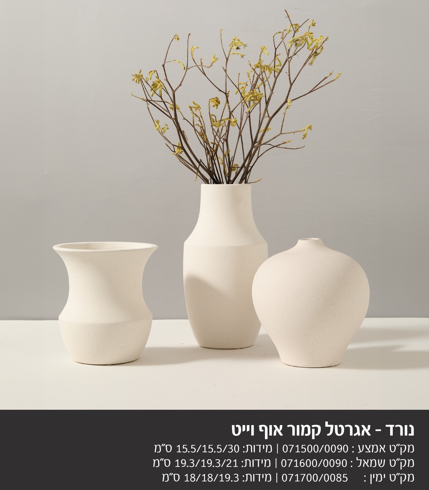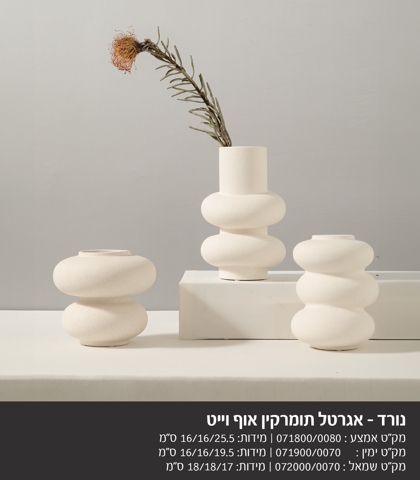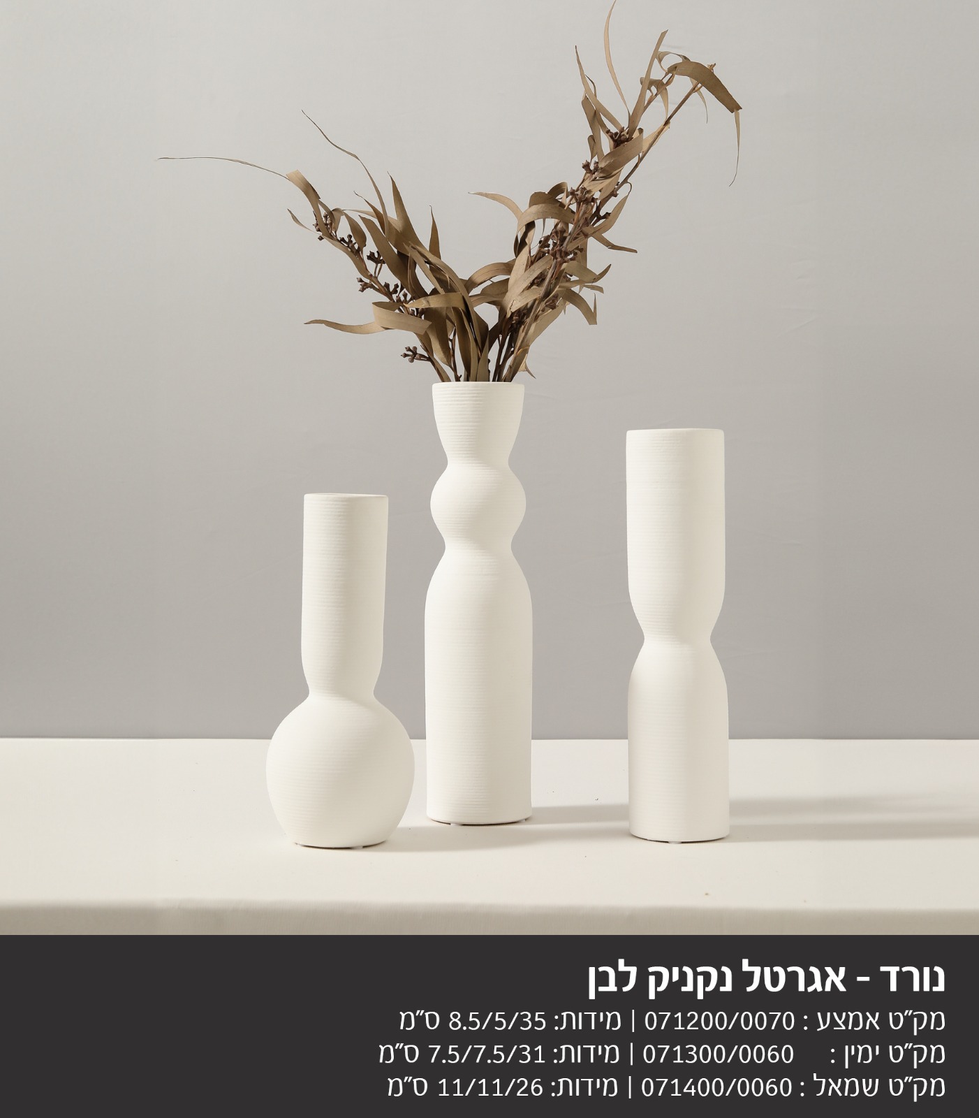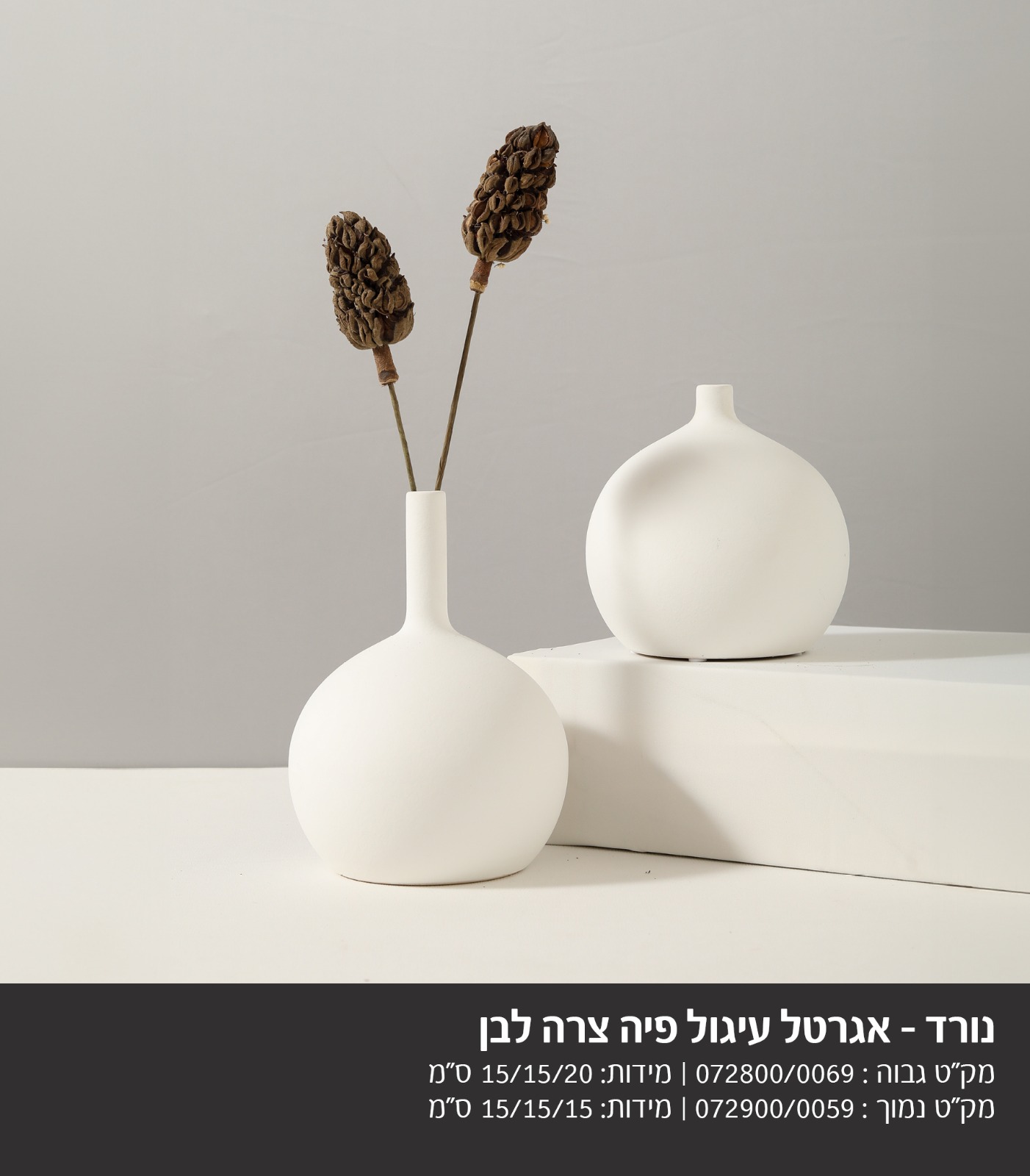 נורד - אגרטל קמור גובה 20 - אוף וויט